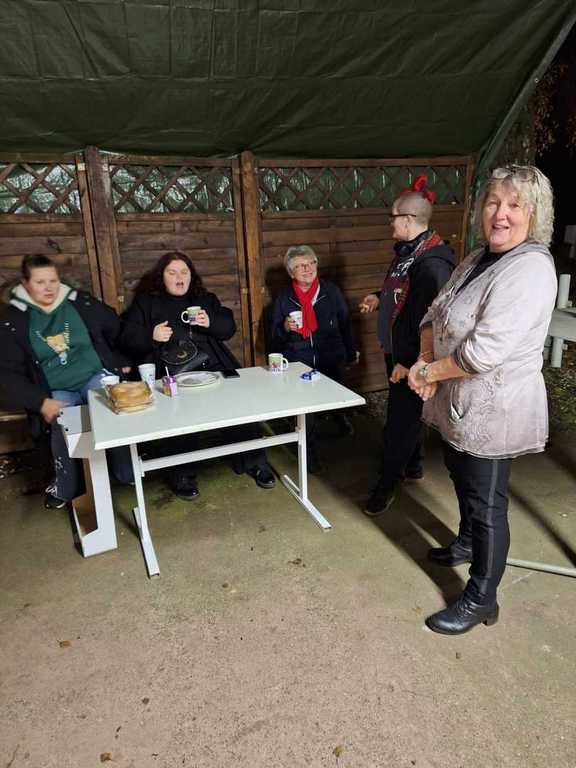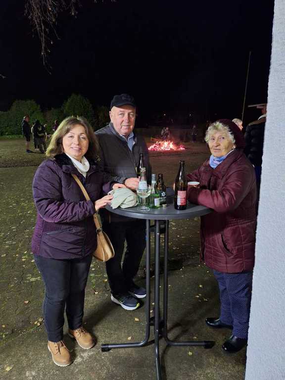 Für die Erwachsenen hatte die Organisationsleiterin Jutta Schiffer auch wieder bestens gesorgt : mit leckerem Glühwein und Rostwürsten. Es gab aber auch kalte Getränke. Etliche Besucher nutzen das milde Wetter und verweilten in toller Gesellschaft und herrlicher Atmosphäre bis in die späten Abendstunden, bis das Martinsfeuer verglüht war. Zuvor wurde die Glut aber noch genutzt, um Kartoffeln zu rösten.