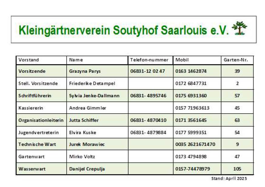 Daher hat die Vorsitzende einen neuen, aktuellen Gartenplan erstellt.